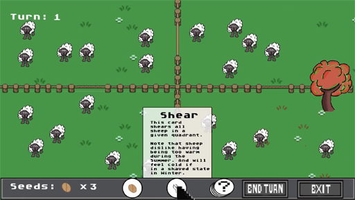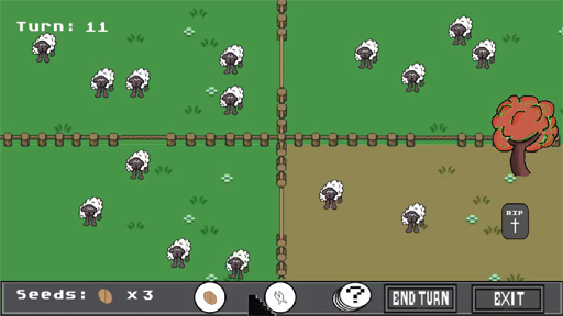 The game serves as a metaphor for the political system of large government and the difficulty of keeping everyone happy in this situation. In Flock-Off you play in the role of a decision maker who has the opportunity to enact edicts which in turn effect different cross-sections of the population in forms of quadrants shown on the game screen. The edicts often have both a positive effect and a negative effect meaning that the player has to be careful in order to balance the happiness of all of the sections of the population.