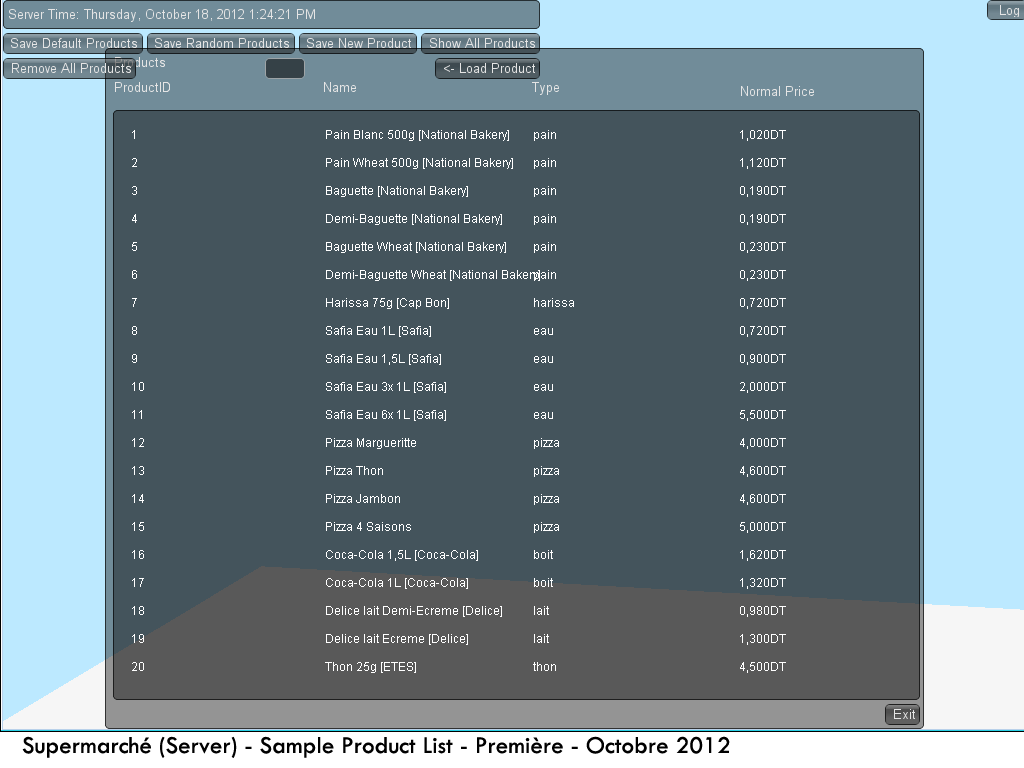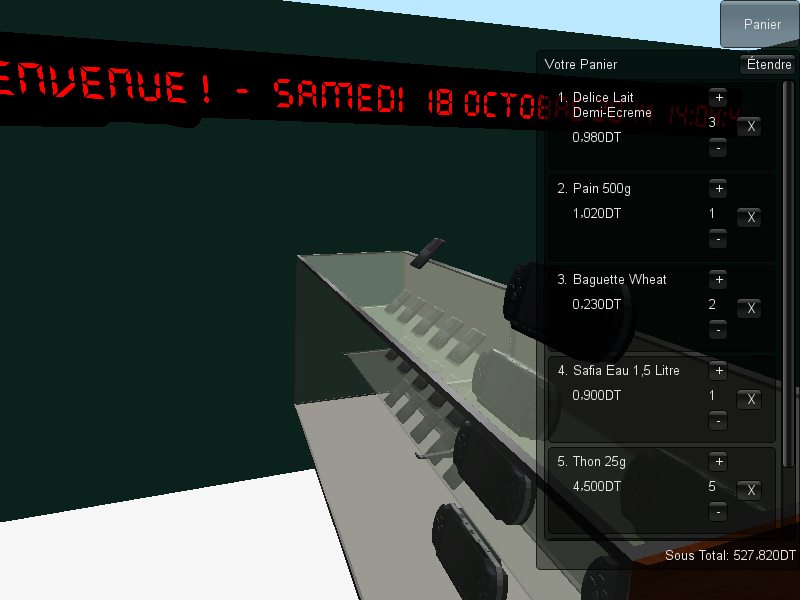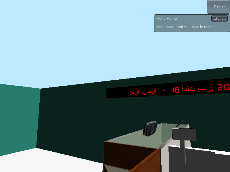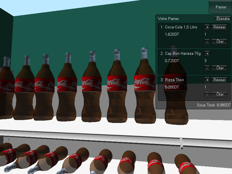 Supermarché was designed to present the user with a basic recreation of the inside of a supermarket, with the shelves lined with 3D representations of the various products available for the user to purchase. Whilst in the United Kingdom or the United States this would may be untenable due to copyright issues with the product packaging or the problems associated with recreating the products in 3D - Tunisia's 'laxer' copyright laws and the common practice of using stagiaires (in Tunisia, a student is often almost obligated to find an internship if they wish to continue in their career path), the use of realistic looking and periodically updated packaging on supermarket shelves to the extent that all items stocked by the supermarket can be represented in someway is much more possible.