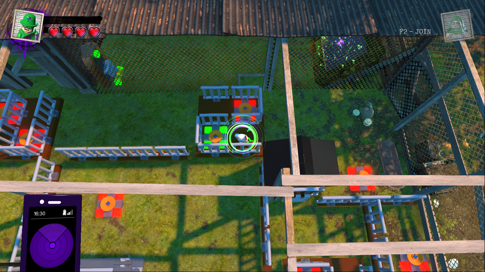 I designed, wrote, and implemented content for the Smallville section of the Earth hub, and the Apokolips hub, as well as the smaller interior areas of Monarch Theatre and Joker's Funhouse. In the latter stages of development I took care of most of the Earth and Apokolips hubs.