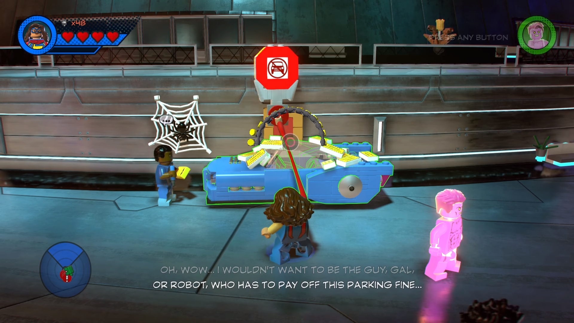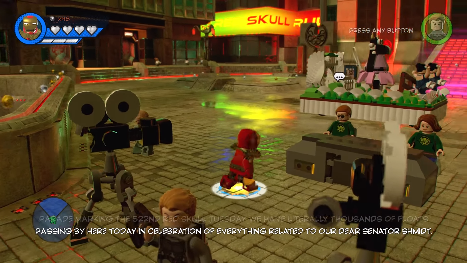 In comparison to earlier games, LEGO Marvel Superheroes 2 features the biggest hub world ever implemented in a LEGO game, Chronopolis - a self-contained megacity featuring districts made up of iconic Marvel locations from across time and space populated by a variety of puzzles, minigames, and missions given to the player by a variety of superheroes and villains.