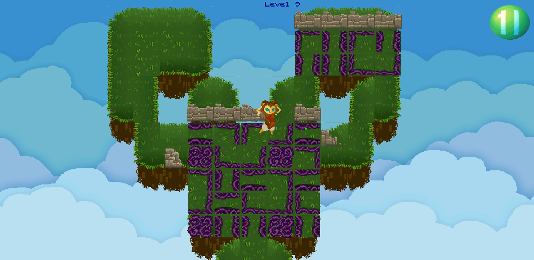 Mí borrows gameplay elements from pipe puzzle games such as Pipe Mania and combines this playstyle with a maze-adventure game. Mí requires the player to complete the pipe puzzles in smaller sections at a time, so that the player character can enter and exit the maze at different points in order to complete the levels. Each level has a 'par', the recommended number of piece rotations needed to complete the level perfectly, which the player is encouraged to strive for while playing through levels.